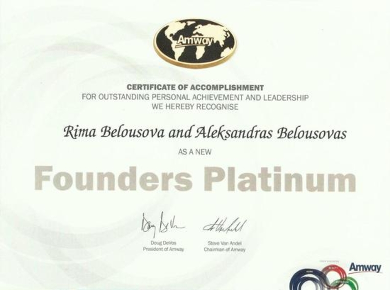 Наша квалификация – Платиновый ПА-основатель бизнеса — это отличный старт для наших будущих достижений и хороший пример партнерам нашей команды.